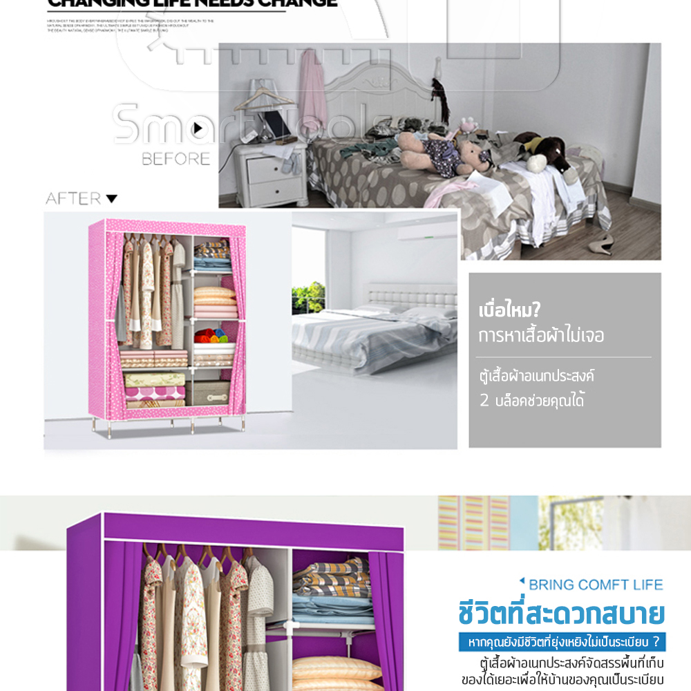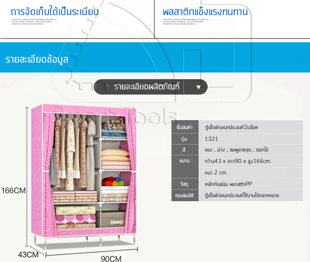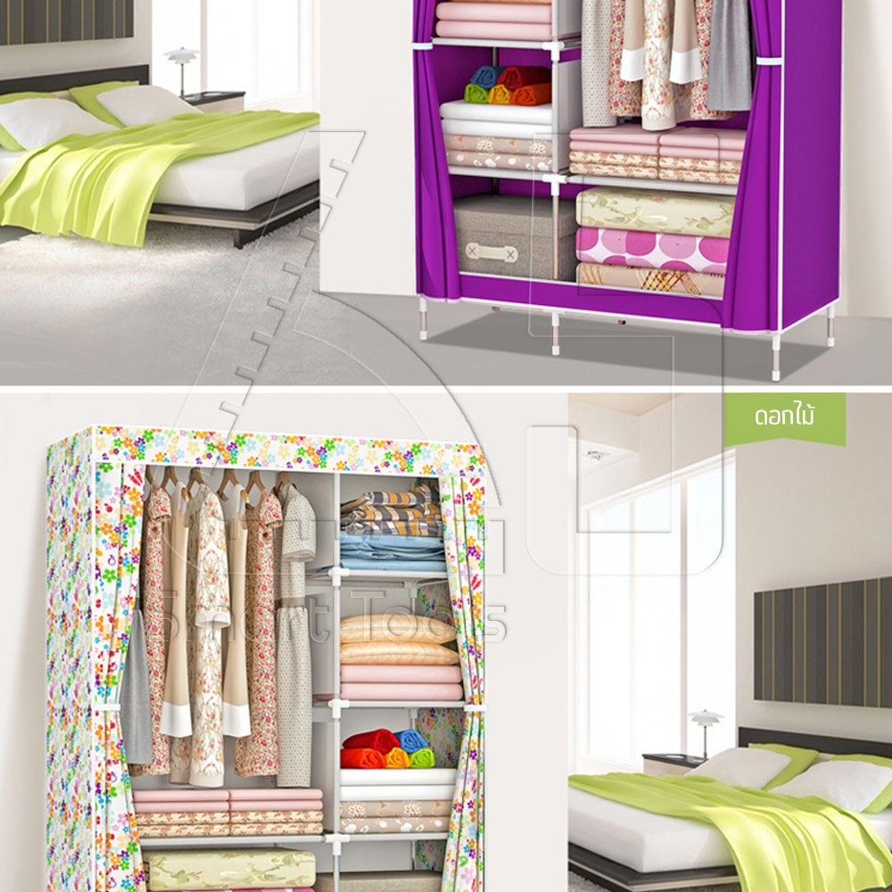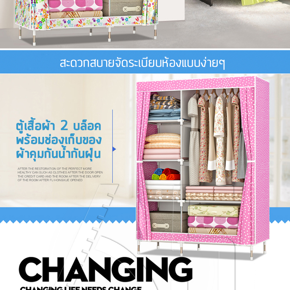 - ตู้เสื้อผ้าอเนกประสงค์ 2 บล็อค พร้อมผ้าคลุมกันน้ำกันฝุ่น