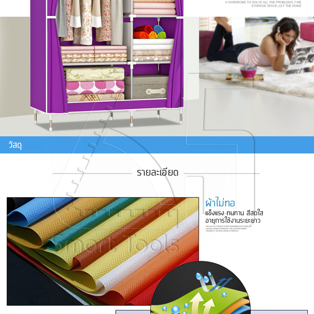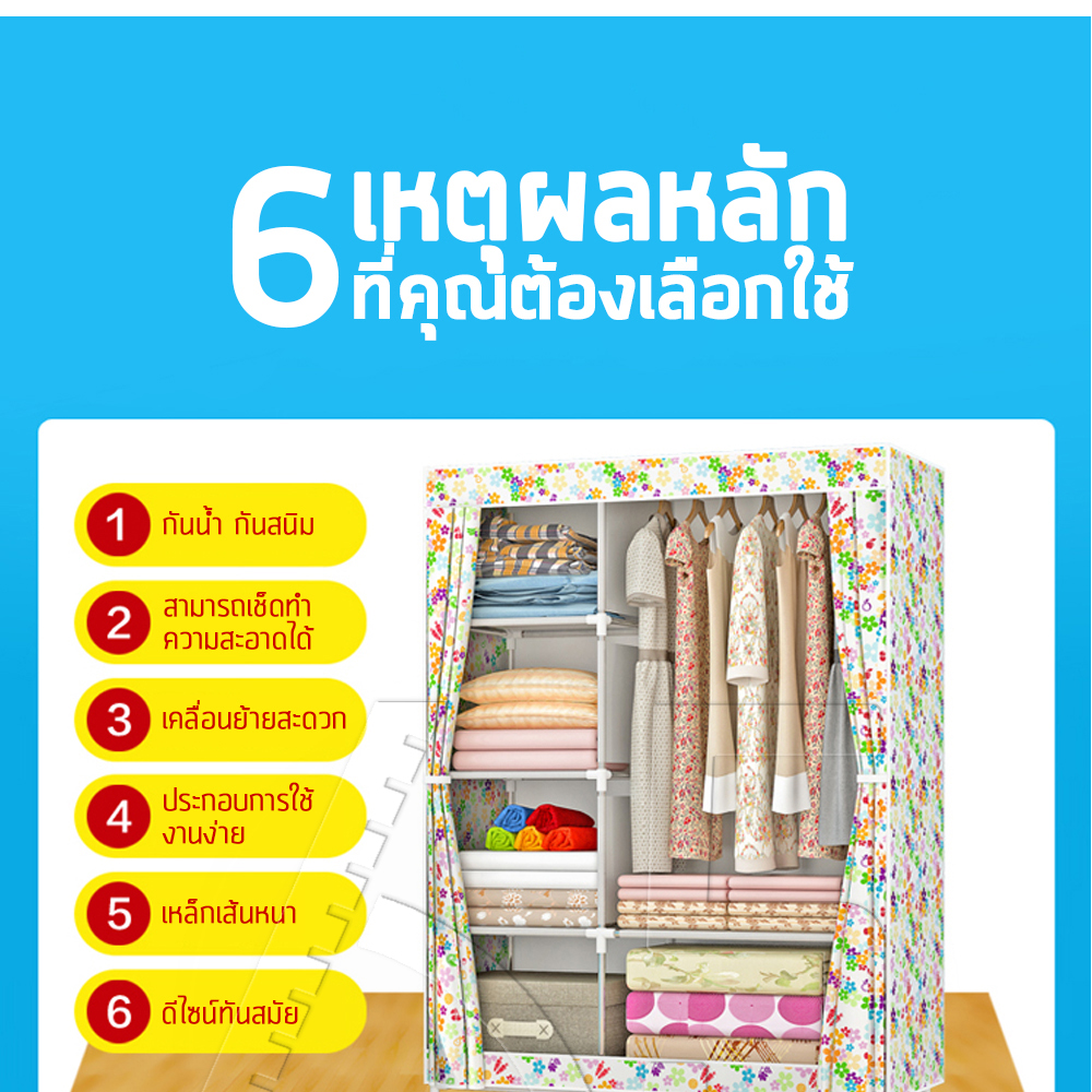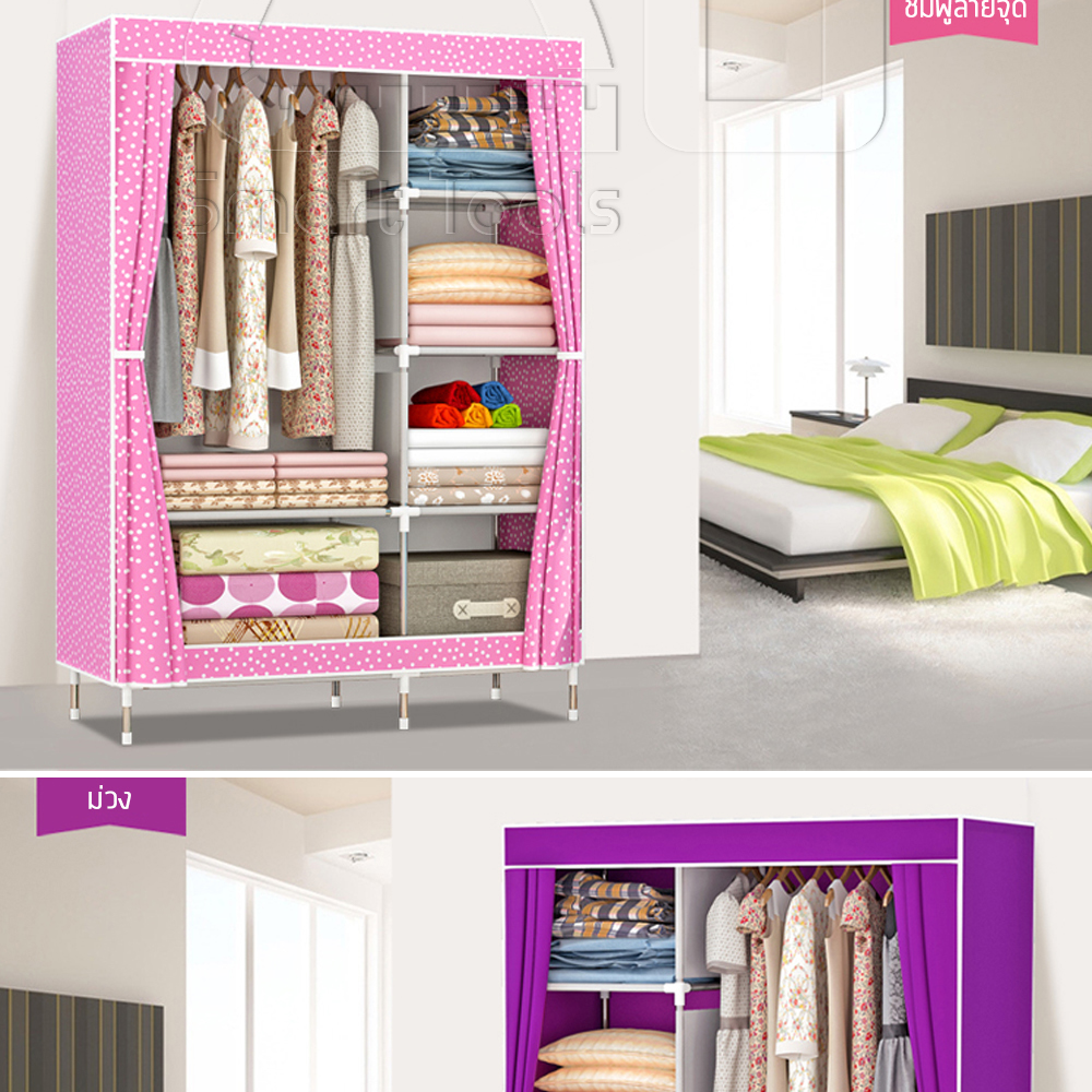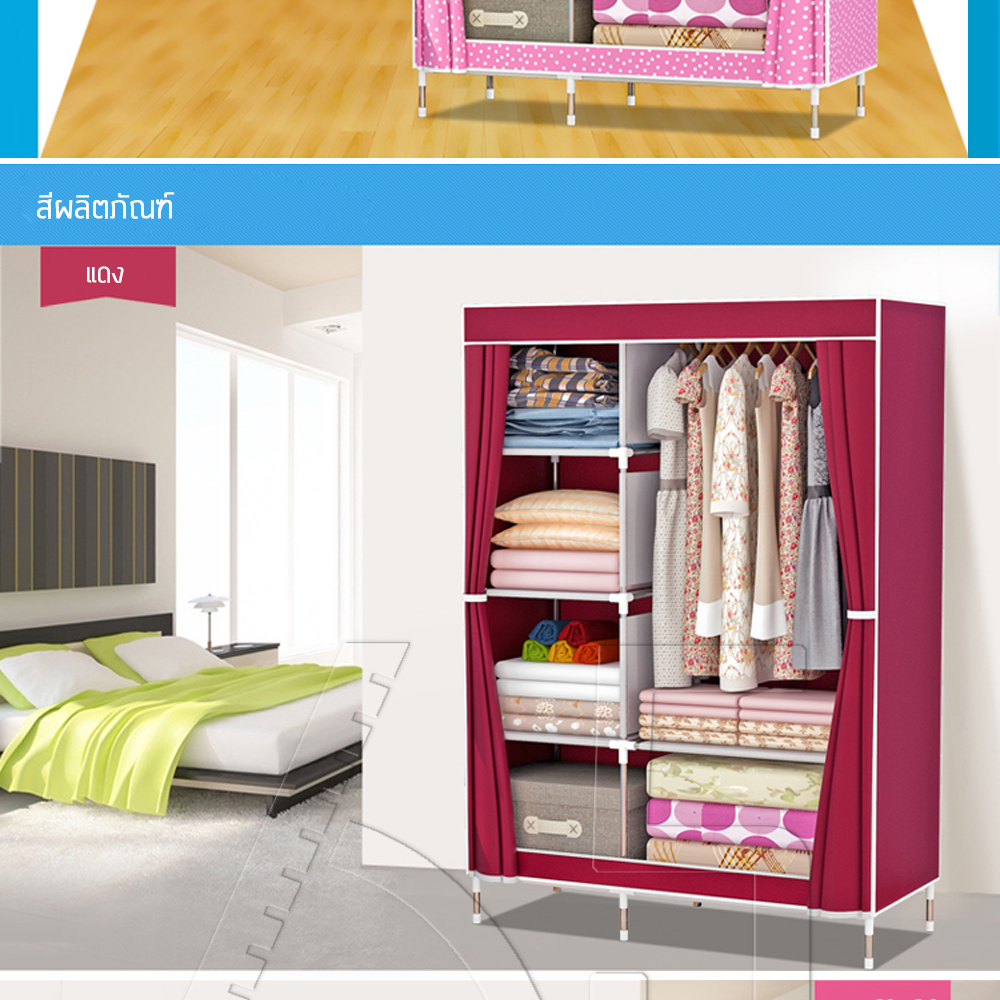- ตู้เสื้อผ้าอเนกประสงค์ 2 บล็อค พร้อมผ้าคลุมกันน้ำกันฝุ่น