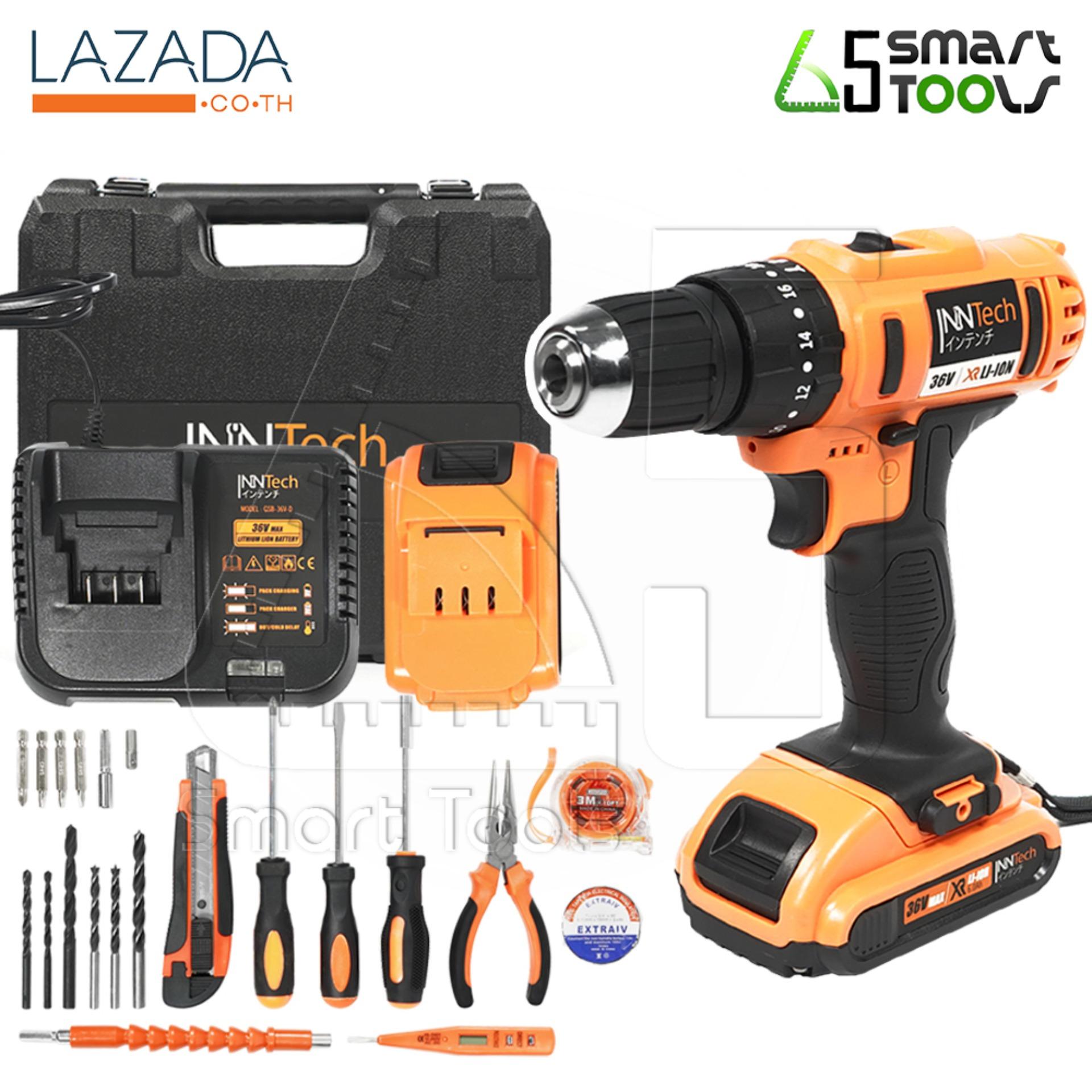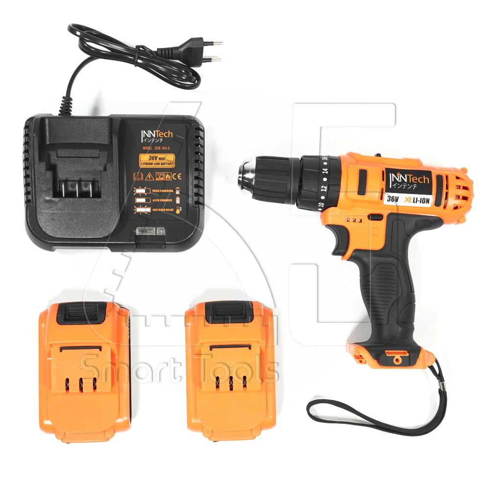 InnTech สว่านไร้สาย 3 ระบบ 36V มีระบบกระแทก รุ่นใหม่ GSB-36V-D พร้อมแบตเตอรี่ Li-ion 2 ก้อน แท่นชาร์จ และอุปกรณ์เสริมมากถึง 21 ชิ้น (กล่องใหญ่)
