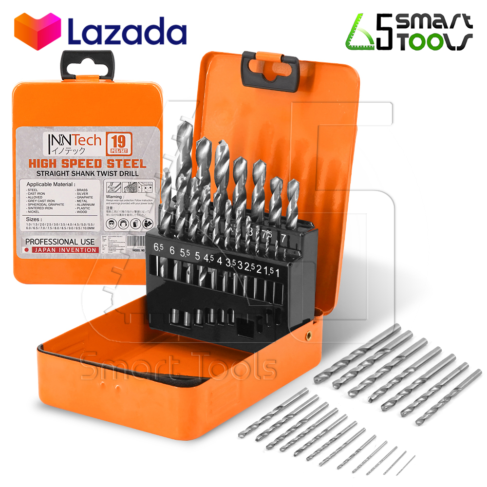 - InnTech ชุดดอกสว่านเจาะเหล็ก ดอกสว่านไฮสปีด 19 ชิ้น/ชุด รุ่น HSS-19
