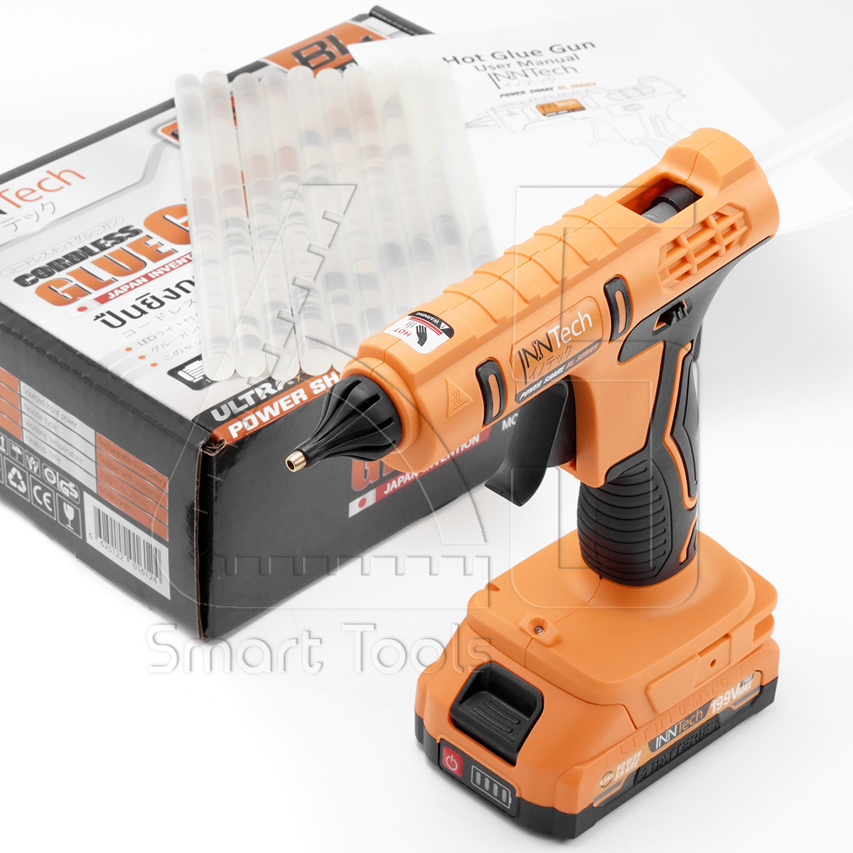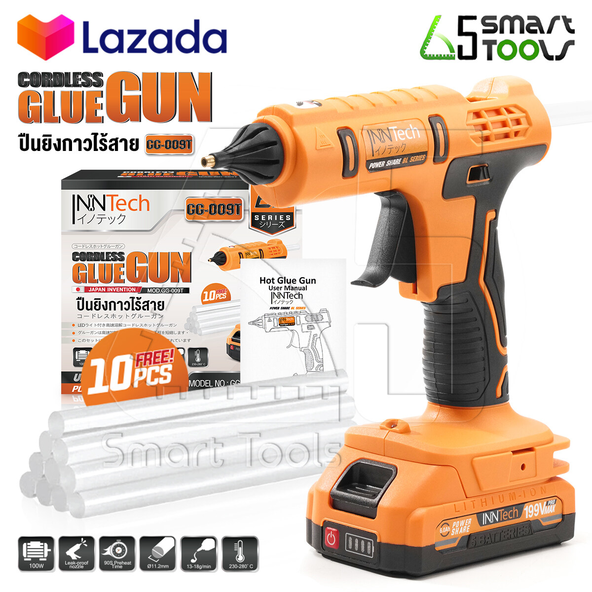 - InnTech ปืนกาวไร้สาย ปืนยิงกาว 100 วัตต์ รุ่น GG-009T ร้อนเร็ว ใช้ในการยึดติดวัสดุชนิดต่างๆ ในทุกสภาพพื้นผิว