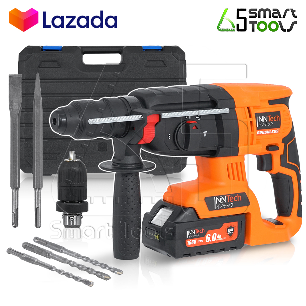 - InnTech สว่านโรตารี่ไร้สาย ขนาด 26 มม. มาพร้อมกระเป๋าจัดเก็บอย่างดี พกพาสะดวก