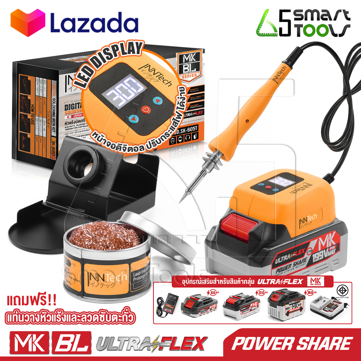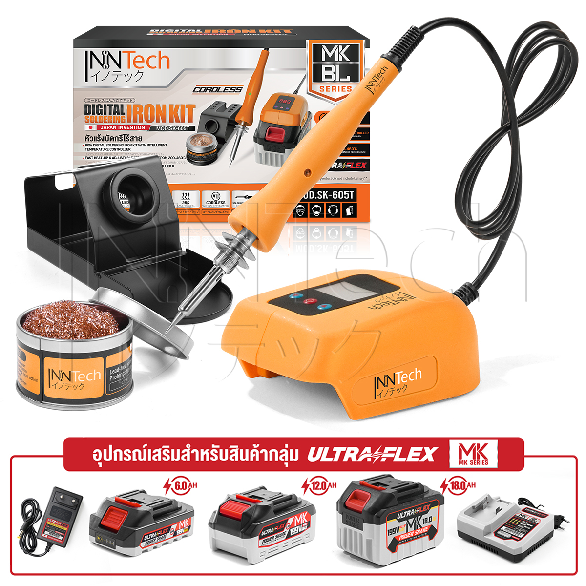 หัวแร้ง บัดกรี MK SERIES รุ่น SK-605T หน้าจอดิจิตอล ปรับอุณหภูมิได้ 200-460 องศา ใช้งานร่วมกับ แบตเตอรี่ InnTech UltraFlex กลุ่ม MK-Series ฟรี! แท่นวางหัวแร้ง และฝอยทองเหลืองทำความสะอาดหัวแร้ง