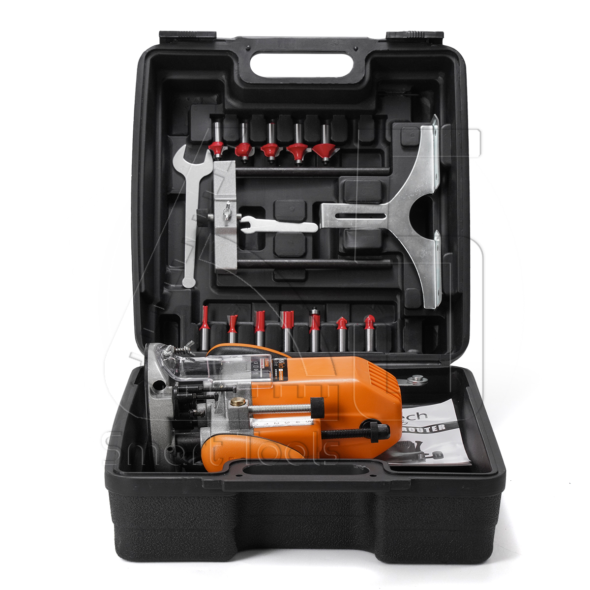 - พร้อมอุปกรณ์เร้าเตอร์ครบชุด 11 ชิ้น และ ดอกเร้าเตอร์ / ทริมเมอร์ 12 ดอก