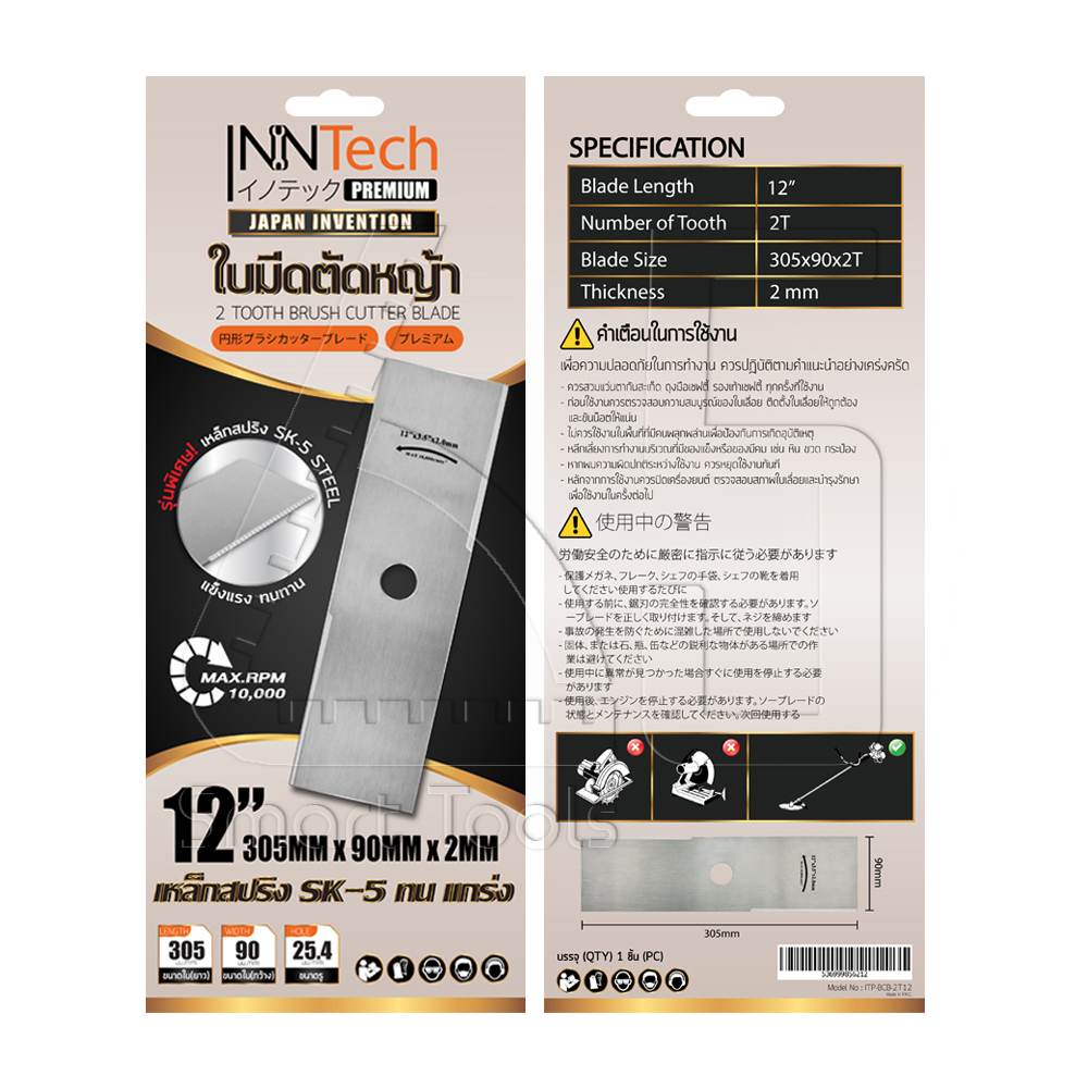 InnTech Premium ใบมีดตัดหญ้า 12 นิ้ว (ทรงตรง) รุ่นพิเศษ!! เหล็กสปริง SK-5 ทน แกร่ง JAPAN INVENTION รุ่น ITP-BCB-2T12