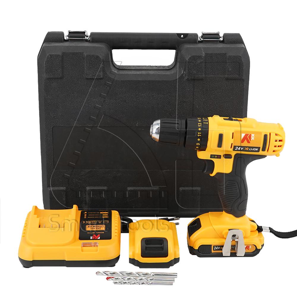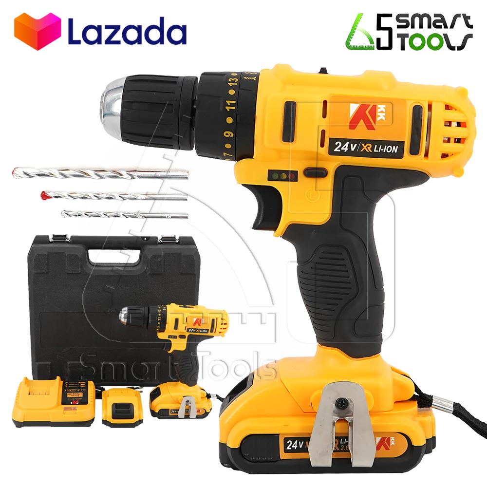 KK สว่านไร้สาย สว่านกระแทก 3 ระบบ 24V พร้อมแบตเตอรี่ Li-ion 2 ก้อน พร้อมกระเป๋าและอุปกรณ์