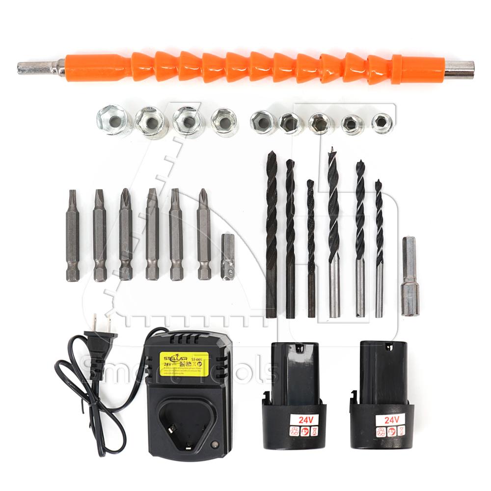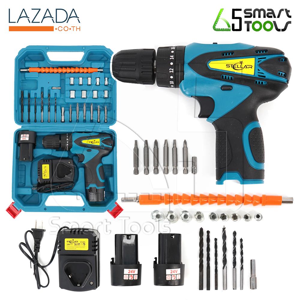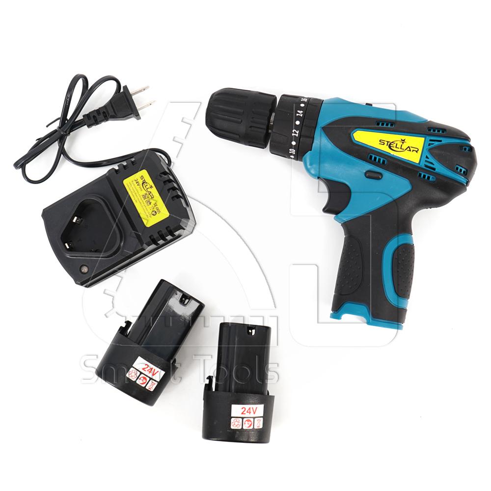 - STELLAR สว่านไร้สาย24V (ในชุดมีแบตเตอรี่ให้ 2 ก้อน พร้อมแท่นชาร์จ)