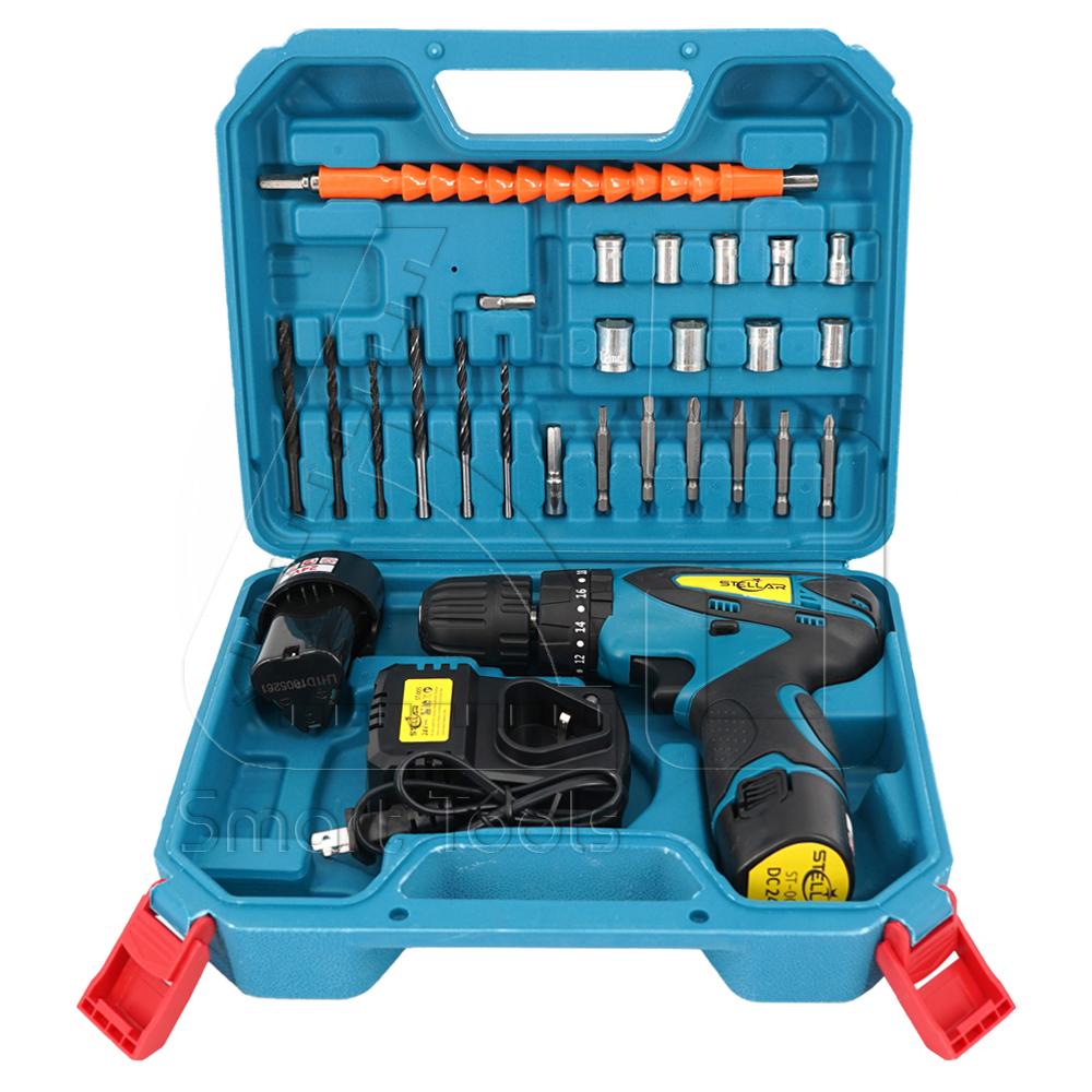 STELLAR สว่านไร้สาย 24V รุ่น ST-005 พร้อมแบตเตอรี่ 2 ก้อน และอุปกรณ์เสริมรวม 25 ชิ้น