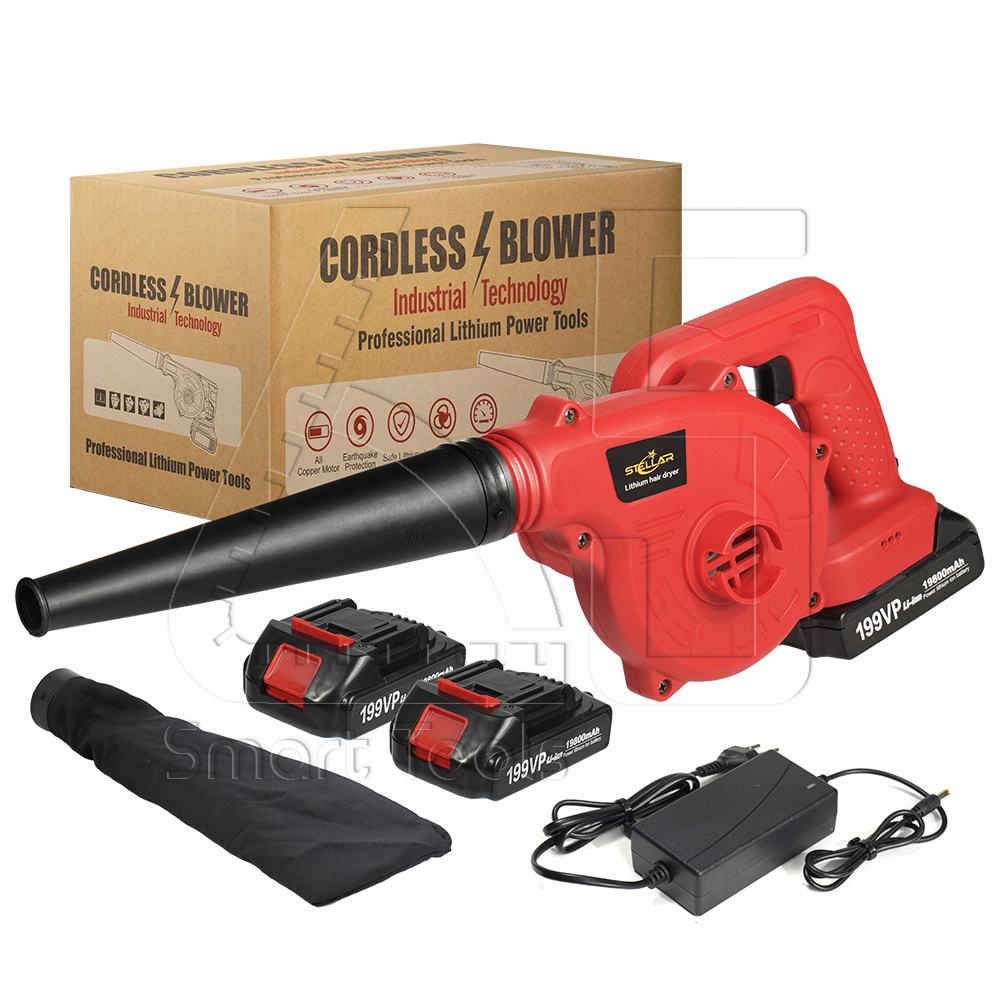 STELLAR เครื่องเป่าลมไร้สาย 199V 2-in-1 ใช้งานได้ 2 ฟังก์ชั่น (เป่าลม-ดูดฝุ่น) เครื่องเป่าลม เครื่องดูดฝุ่น ล้างแอร์ Cordless Blower รุ่น ST-09C พร้อม แบตเตอรี่ 2 ก้อน ถุงเก็บฝุ่น และอุปกรณ์ครบชุด