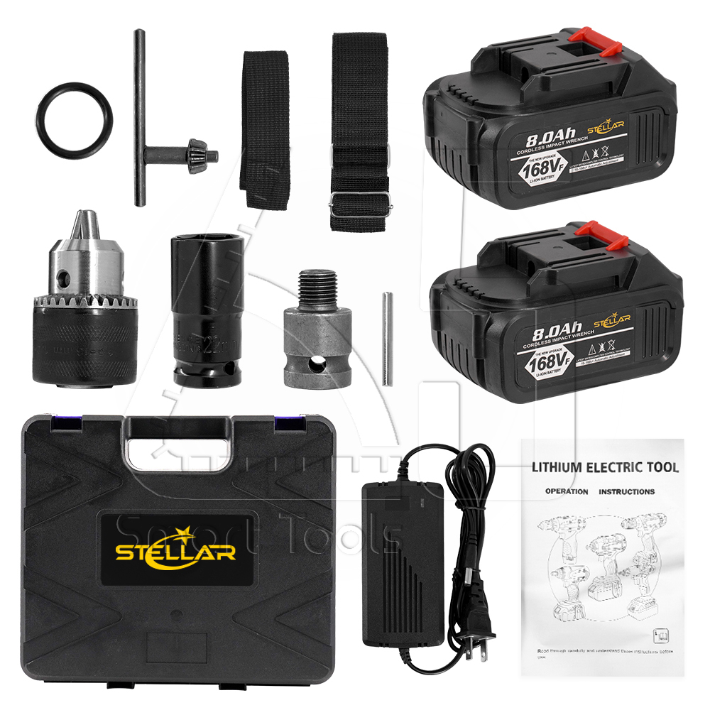 STELLAR 2in1 บล็อกแบต & สว่าน 168V รุ่นใหม่! มอเตอร์ BRUSHLESS ไร้แปรงถ่าน พร้อมแบตเตอรี่ Li-ion (แบตใหญ่) บล็อกลม บล็อกไฟฟ้า สว่านไร้สาย บล็อกแบตเตอรี่ บล็อกไร้สาย พร้อมอุปกรณ์ครบชุด รุ่น STW-996 Brushless Impact Wrench