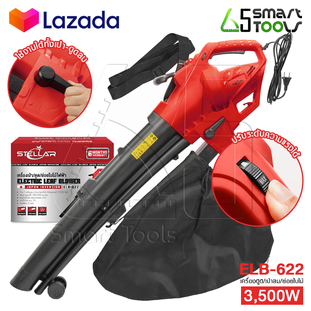 STELLAR 3in1 เครื่องเป่าใบไม้ เครื่องดูดใบไม้ Electric Leaf Blower เครื่องเป่าลม ขนาดใหญ่ 3500W เครื่องเป่าลมยักษ์ เป่า-ดูด-ย่อยใบไม้ รุ่น ELB-622 ปรับระดับแรงลมได้ แถมฟรี! ถุงเก็บฝุ่น เก็บใบไม้ ความจุ 35L