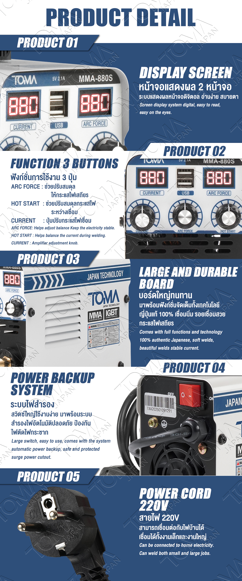 - TOMA JAPAN ตู้เชื่อมไฟฟ้า ตู้เชื่อมมินิ ระบบอินเวอร์เตอร์ MMA-880S รุ่น TMMN-880S