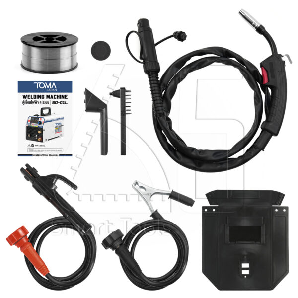 • มาพร้อมอุปกรณ์ครบชุด สายเชื่อม MIG ยาว 2 เมตร, สายเชื่อม MMA ยาว 1.8 เมตร, สายดิน ยาว 1.5 เมตร, หน้ากากเชื่อมพร้อมด้ามจับ, แปลงลวด พร้อมใช้งานได้ทันที