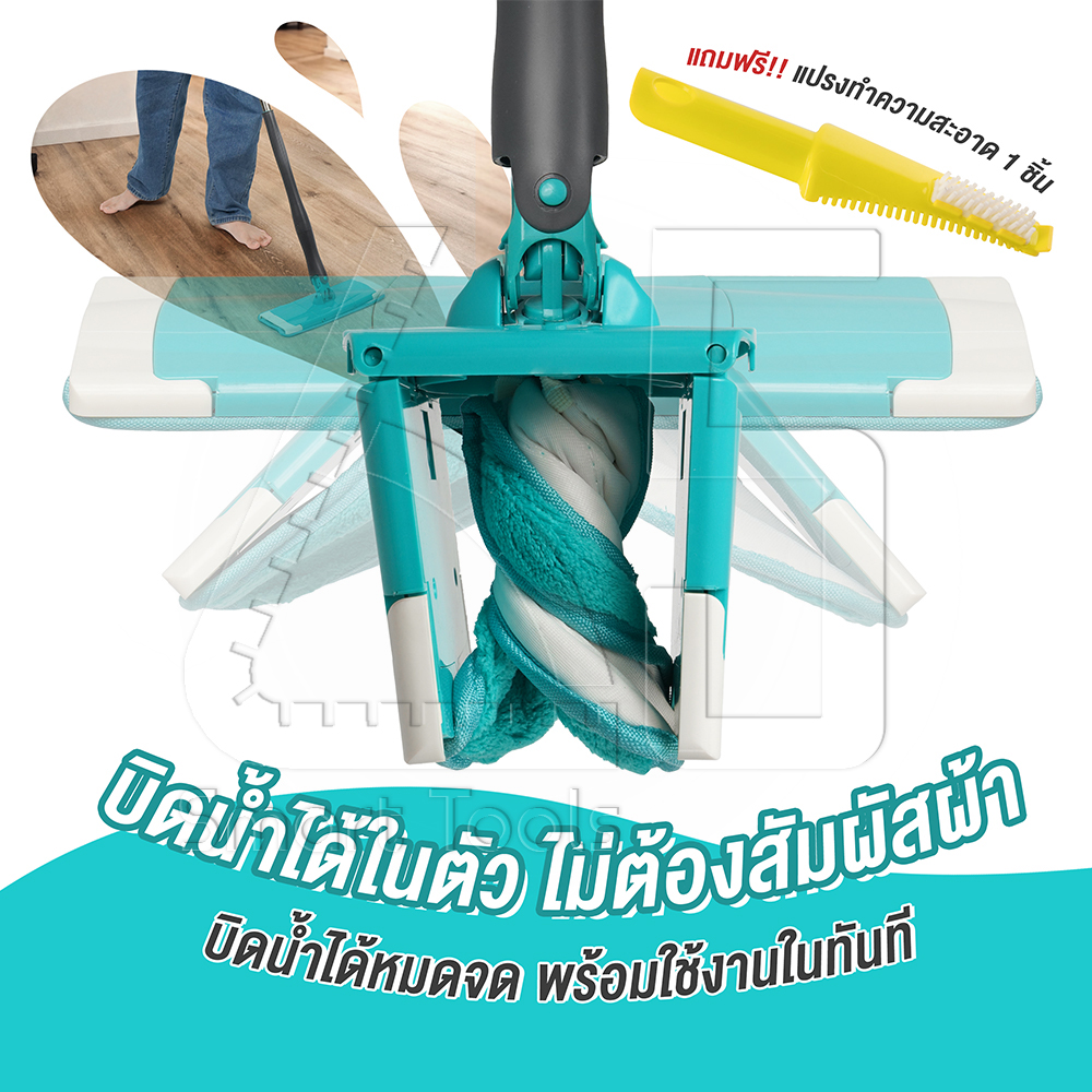 - นวัตกรรมใหม่ ใช้ง่ายสะดวกสุดๆ สามารถบิด-รีดน้ำได้ในตัว ใช้งานง่าย และประหยัดแรง
