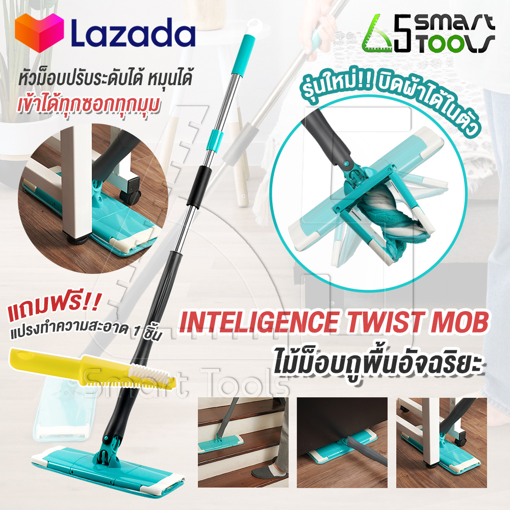 TWIST MOB ไม้ถูพื้น ไม้ถูพื้นแบบรีดน้ำ ถูง่ายสบายมือ ไม้ถูพื้นหัวแบน หมุนได้ถึง 360 องศา ไม้ม๊อบ ไม้ม็อบถูพื้น